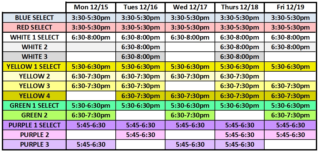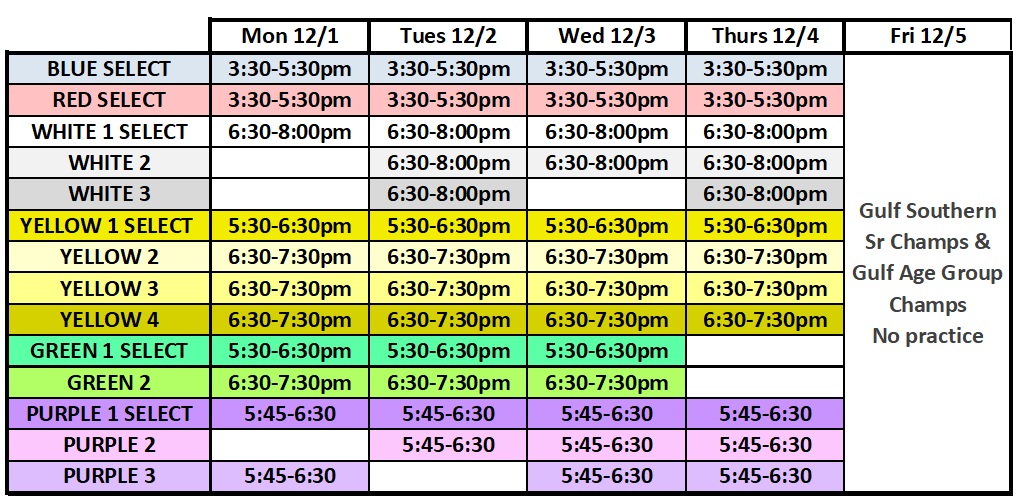 December is always a busy month for our team, especially with multiple Championship meets that pull our coaching staff in many directions. Thank you in advance for your flexibility and support!