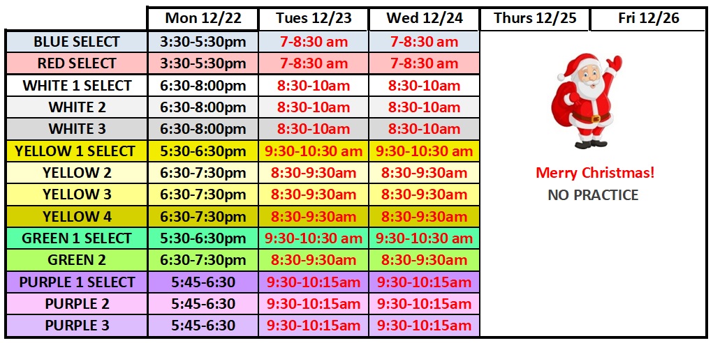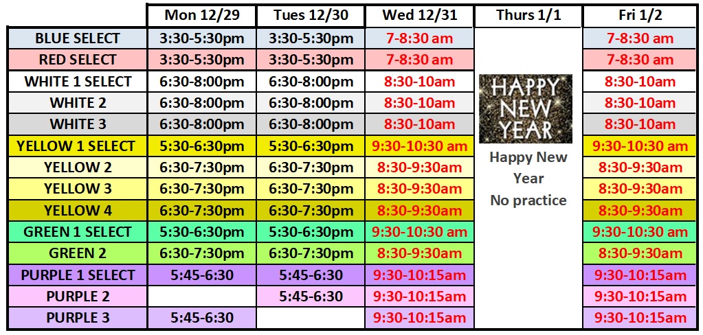 Thursday, December 25 & Friday, December 26 β No practice for Christmas